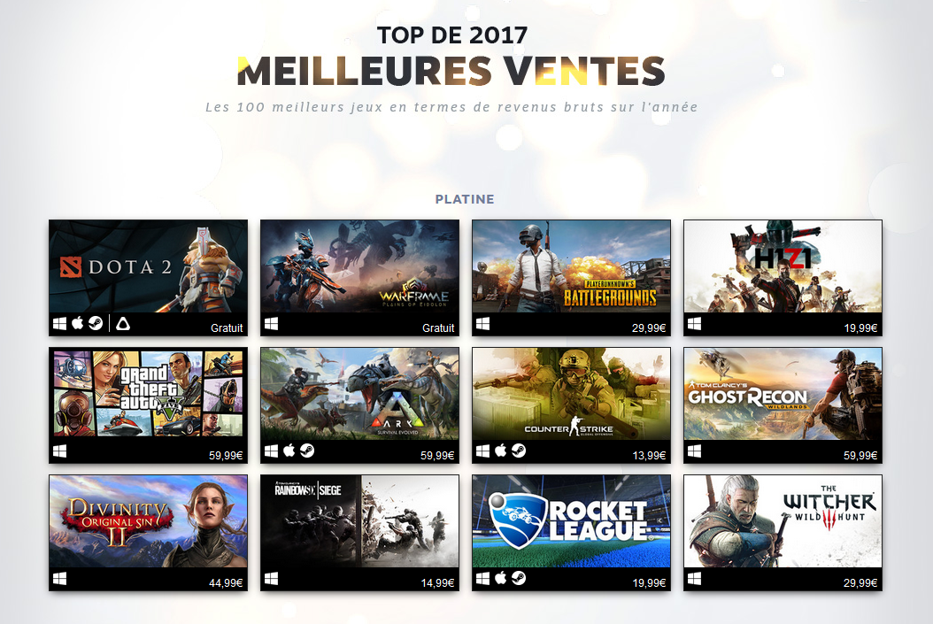 Les 12 jeux les plus vendus sur Steam en 2017 (cliquez pour agrandir)