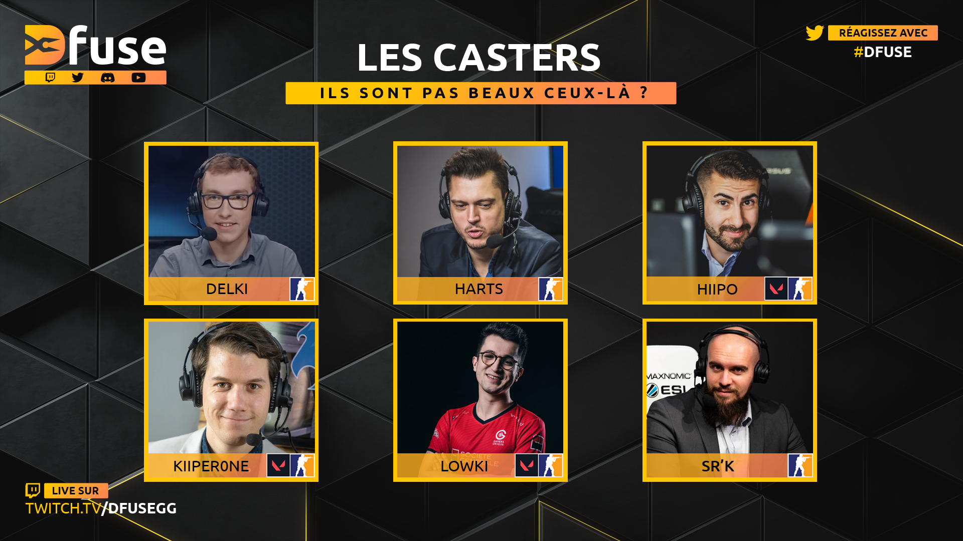 Forte de l'expérience au cast de ses fondateurs, Dfuse couvrira conjointement les scènes professionnelles et amateures de CS:GO et VALORANT. S'il est parfois difficile de savoir où suivre les différents matchs d'ECN ou d'ESEA, Dfuse permettra de centraliser ces diffusions tout en laissant leur chance à de jeunes casteurs qui pourront acquérir de l'expérience.