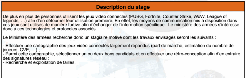 C'est une offre de stage assez classique, juste qu'elle est dans le domaine de la cyber-sécu et que c'est pas le genre de trucs sur lesquels tu tombe par hasard...