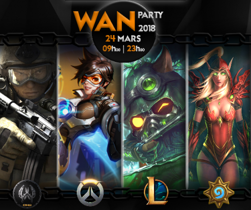 7 Le 24 mars prochain, les filières Réseaux & Télécommunications de 15 IUT français organisent une WAN, Wide Area Network. Le concept ? Tous ceux voulant participer se retrouvent dans l'IUT organisant l'événement le plus proche de chez eux, puis des matchs ont lieu toute la journée face aux équipes présentes dans les autres IUT. Comme une lan, en un peu différent étant donné que tous les joueurs ne sont pas au même endroit.