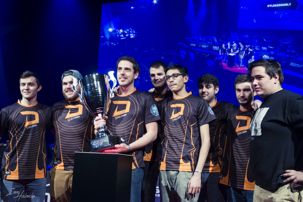 PetitSkel sous le maillot dizLown, avec le trophée de l'Assembly Winter 2017