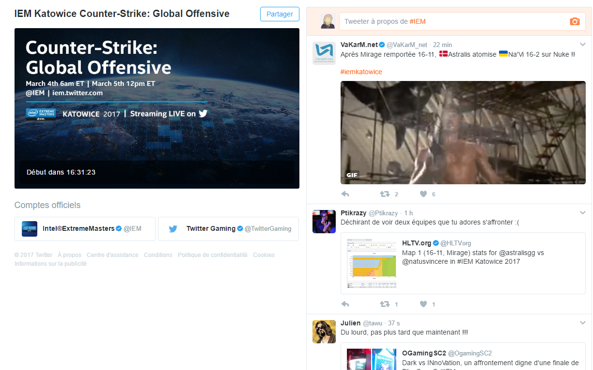 Twitter récupère le contenu de tous les jeux ESL et IEM ou seulement certains, donc CS ?