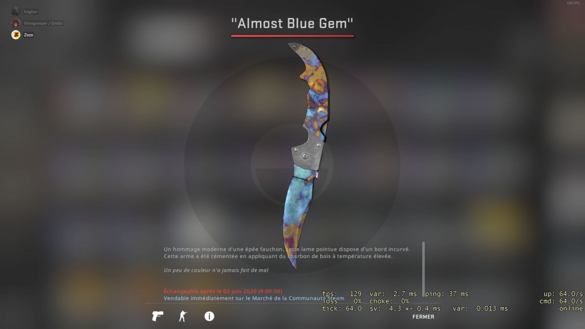 Yo, j'ai acheté ce cut cémenté sur SkinBaron pour pas très cher. Je voulais savoir quel est son vrai prix. C'est un cémenté donc le pattern peut peut varier celon les prix (le mien a beaucoup de bleu). https://zupimages.net/up/20/22/wfz0.png Merci. Emilio |