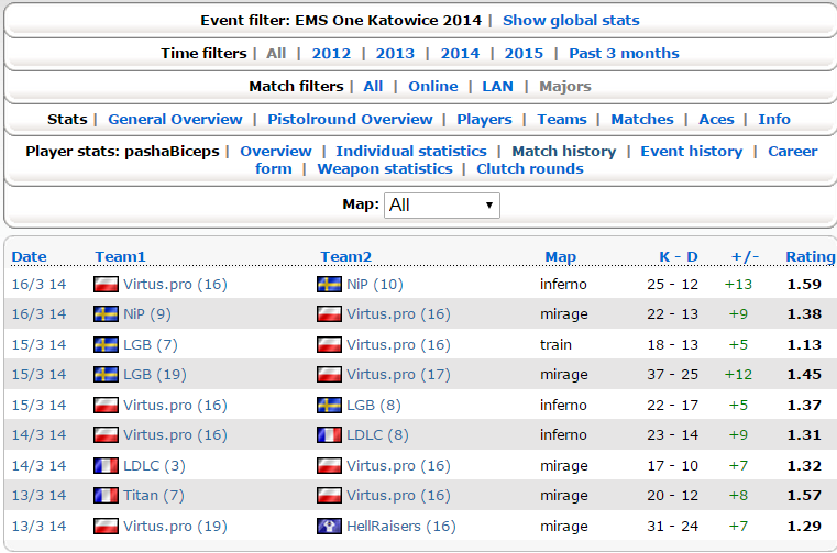 il y a le BOT Allu chez NIP, BOT Ex6 chez Titan, il y a clairement le BOT Pasha chez VP, il est mauvais, il fait tres rarement 2kills dans un round, toujours en bas du scoreboard, aucun clutch etc Par contre il a une enorme popularité depuis ses streams 24/24 et ses dons de Motar2k. C'est vrai qu'il a l'air gentil / sincere toussa mais niveau skill il est vraiment loin d'un Bialy / Snax imo :( Sinon tu ira voir les stats des joueurs nip sur ce major avant de dire des bétise énorme. oui oui, tiens je t'aide fanboy :) https://gyazo.com/b5fbeac24e481b497a2297a88f8fb661 3/15 il est bon Tu prends les stats d'un match ou ils se sont fait rouler.. Et le meilleur des NIP est à 11/15... Sur l'event complet, il est à 69/58... Evites de poster pour dire nimp, ça t'évitera de te tourner au ridicule tout seul. |