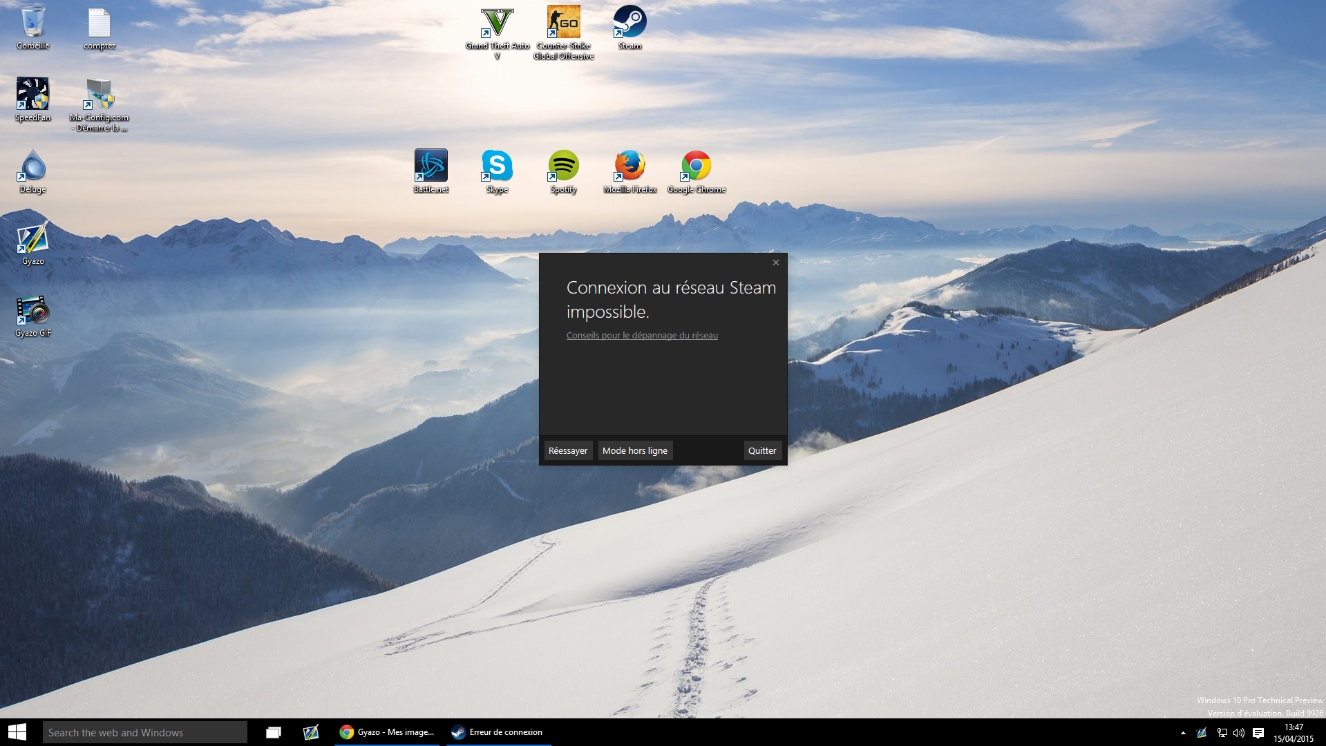 Yo voila impossible de me connecter à steam depuis quelques heures je ne sais pas ce qu'il se passe http://i.gyazo.com/c7ceadb45e701de289b052c43cc001ef.jpg Quelqu'un à le même problème? je sais pas quoi faire ... |