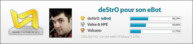 Pour autant que je sache les devlp de chez hltv n'ont pas (piqués) l'idée ailleurs, c'est leur propre création, l'idée est géniale franchement, personne ici n'a dit (FAUT LEUR PIQUER L’IDÉE), il y a des devlp sympa chez vakarm normalement, avec l'aide de ( http://www.vakarm.net/files/news/neL/1359641984-resultats-honneur.jpg ) et aussi regnam et les autres, y a moyen de faire un truc similaire, voir mieux que ça, c'est ça l'idée en faite. |