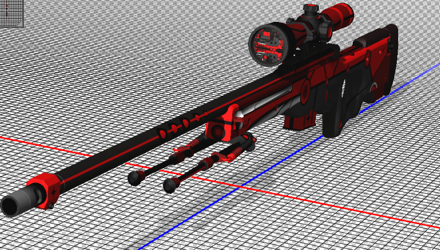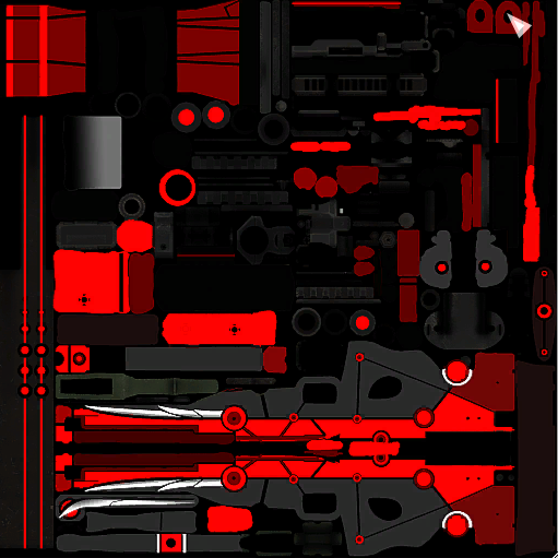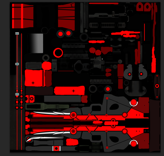 Il me semble que sur certaines armes les détails (type scope/canon) sont sur la couche alpha, essaie de la mettre tout en blanc / tout en noir et voit ce que ça donne. |