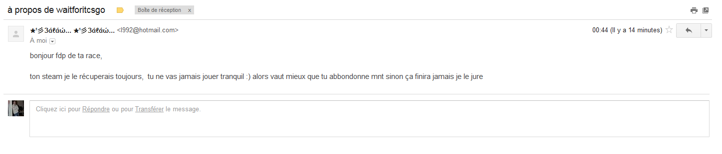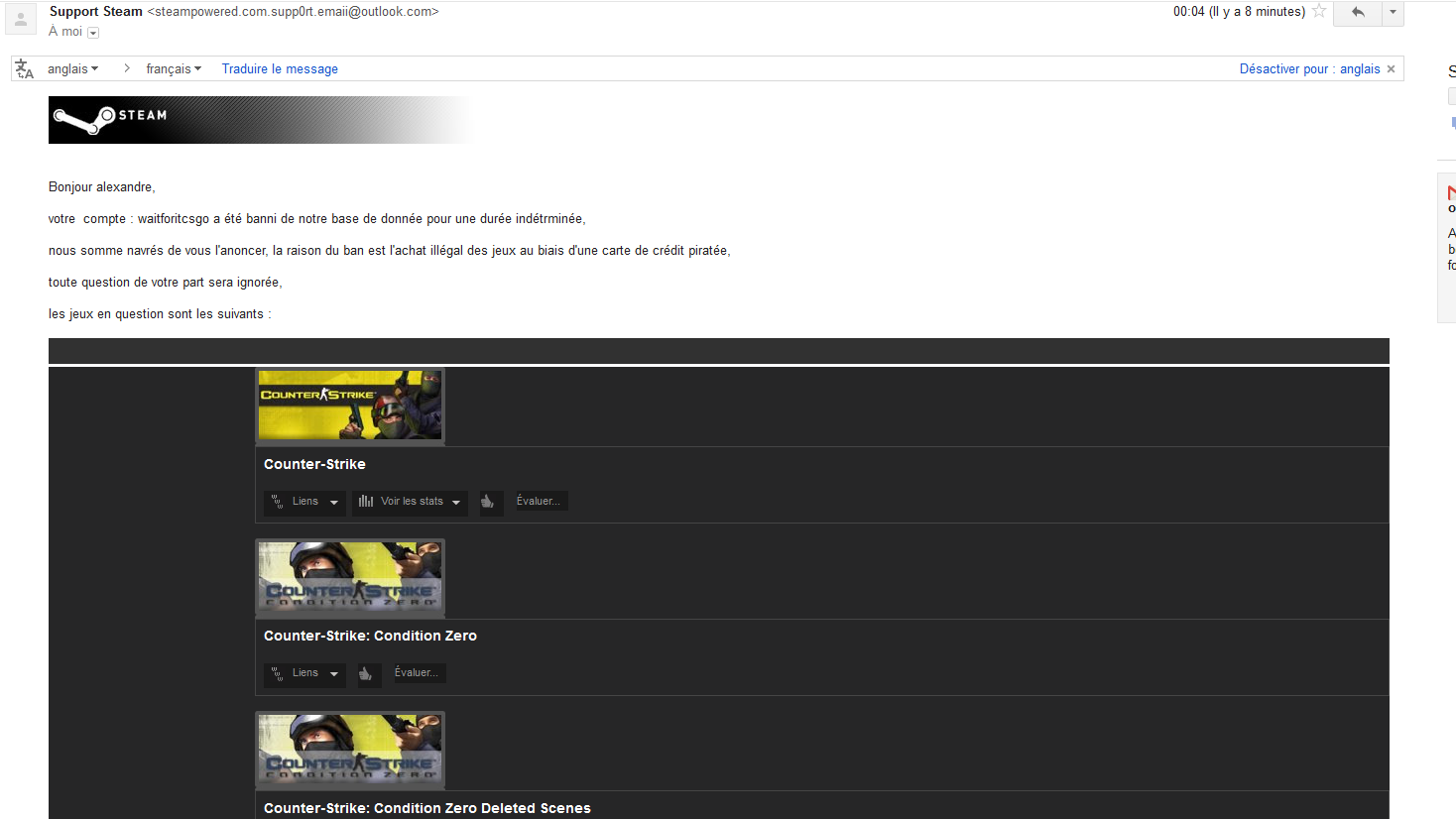Bonsoir à tous, Alors d'abord je sais ce n'est pas un forum steam, mais je tiens à vous faire part mon expérience, sur cs on a communauté très à l'écoute les un des autres . Enfin bref passons. Je suis un joueur de CS:GO depuis quelques temps et il y a de cela 1 mois je me suis fait hacké mon compte steam, j'ai d'abord cru a un ban du compte car quelqu'un fermait mon ticket sur le support et m'envoyais des mails m’expliquant un ban avec l'adresse "support@store.steampowered.com" que j'avais été ban pour Triches et Insultes, j'ai évidemment protesté mais sans suite.. Et la, il y a quelque jour je tape machinalement la page de mon profil steam (celui hacké) et je remarque que le compte est à nouveau utilisé par un pseudo différent, une image différente, une localisation différente, bref j'ai réalisé que mon compte avait été tout simplement volé.. Ni une ni deux, je refais un support qui, au bout de 24h, aboutit sur la récupération de mon compte.. Mon objectif était de vite rapatrier mes skins sur mon compte secondaire au cas où la personne aurait cheater sur mon compte ce qui, en cas de vacban les auraient pris au piège.. Changement du mail du compte, du mot de passe, steamguard activé.. Mais ce soir, c'est de nouveau le même manège, je ne peux plus me connecter et j'ai recu ce mail http://i.gyazo.com/7ff2f3ac0d54c4814baeb12c588f634c.png Bon la le mail était EVIDEMMENT tout sauf crédible .. Je me retrouve à refaire un ticket steam support en me demandant si je vais pas devoir en faire un tout les 3jours.. Et je reçois dans la foulée http://i.gyazo.com/cefaf2b81eef58f8a2b2b090b240c97f.png Voila voila, je ne sais absolument pas quoi faire.. Je ne vois pas comment la personne fait pour "fuck me so hard" Je change régulièrement de mot de passe, un coup d'ADWCleaner souvent aussi, je suis plutôt quelqu'un de prudent de ce niveau là et pourtant quelqu'un s'amuse tranquillement avec mon compte.. D'accord, c'est du gros story telling mais je veux juste vous partagez ce qui se passe en ce moment(vous pouvez comprendre mon énervement je pense) et si des personnes pouvaient me conseiller dans quoi faire car honnêtement je ne vois absolument pas comment faire pour fixer tout ça.. Merci à ceux qui auront lu.. |