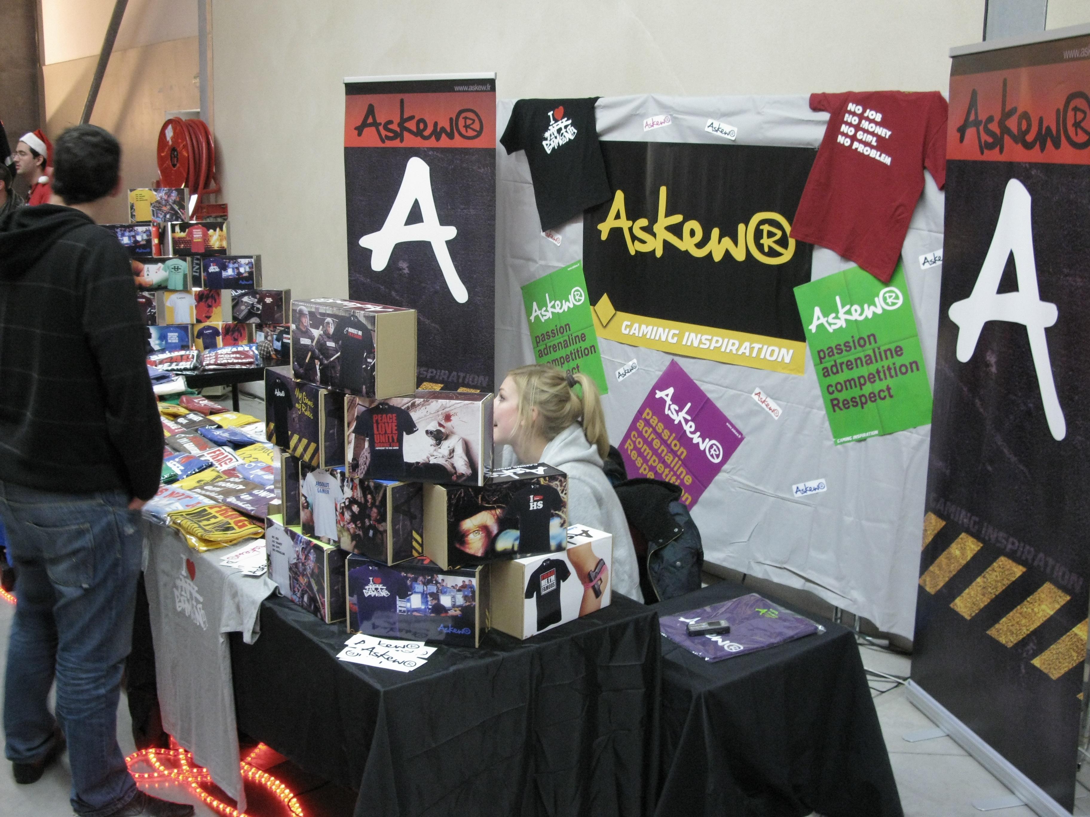 Askew, qui signifie "de travers" ou "décalé", est une marque de Gaming Wear créée par des joueurs et pour des joueurs. Une marque totalement impliquée dans le sport électronique qui s'investit aux côtés de structures de jeux comme D4Gaming, eSport-Eu, Dreamrar ou encore GYGABYTE. Mais vous avez également pu croiser la marque sur des stands de différentes lans, comme à Arles pour la PxL ou encore du côté de la Bretagne lors de la dernière Spirit Lan.