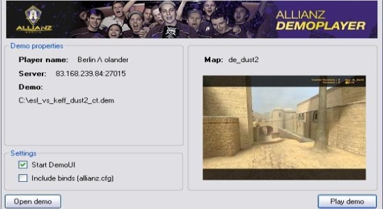 23 Il y a déjà de cela quelques années Andreas "bds" Thorstensson grande figure de la multigaming SK sortait son démoplayer pour 1.6 : Le SK player. En effet ce player avait était conçu pour faciliter la vie aux joueurs voulant regarder des démos car il permettait d'obtenir de nombreuses informations sans forcément avoir à passer par le jeu. Aujourd'hui, les Berlin AllianZ par le biais de David Olander Olander sortent leur propre player pour CS:S.