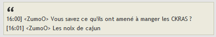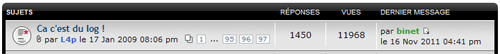 Dans le topic sur les logs il doit y avoir plein de zumonades... snif...