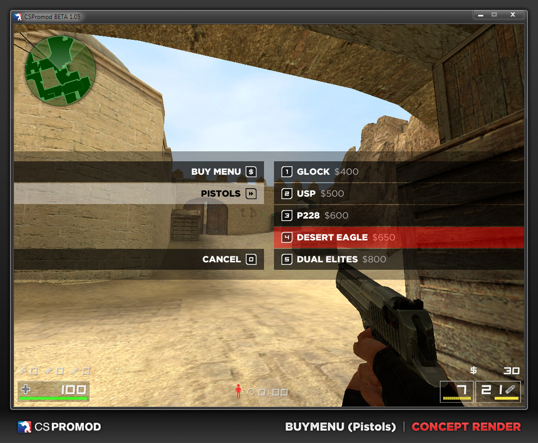 Tu prend le menu d'achat "moderne", le scoreboard ainsi que le HUD voir le GUI de csp et tu le met sur css et on a un déjà un bien meilleur jeu!
