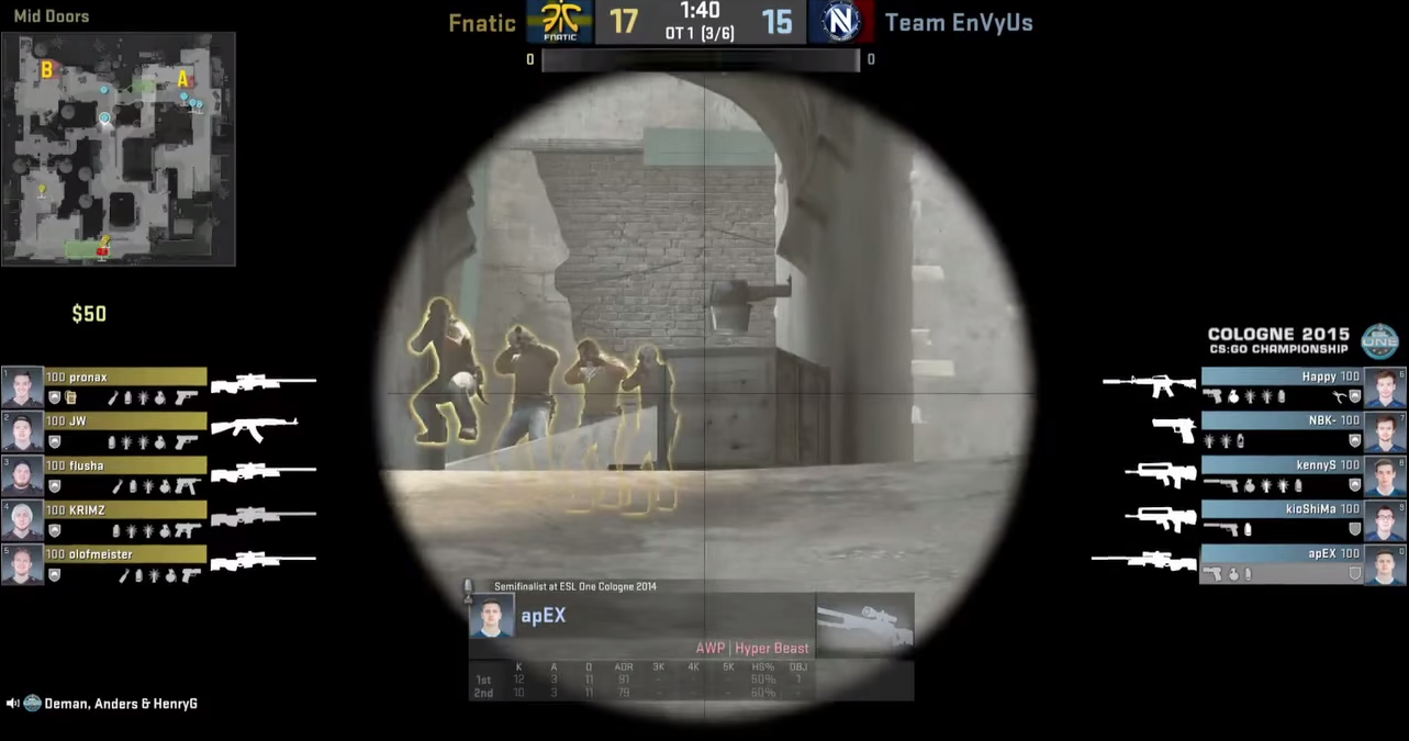 juste MDR l'image d'apex ! j'aurai été souled a ca place xD ! bref EnvyUs peuvent toujours tenter le pixelwalk sur l'image ou APex a 4 AWP en face :p ya un des FNATIC qui ne repose sur rien xD