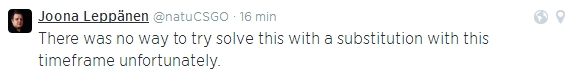 9 A la veille du lancement de la DreamHack Summer 2014, les Finlandais d'ENCE invités par l'organisation à prendre part au tournoi CS:GO, ont annulé leur participation à la dernière minute invoquant "une tragédie familiale" concernant l'un des joueurs. Avec un timing aussi serré, impossible pour eux de prendre un remplaçant pour espérer débuter leur tournoi ce samedi après-midi puisque rappelons-le, ENCE devait jouer dans la poule A aux côtés d'Epsilon, Berzerk et Ninjas in Pyjamas.