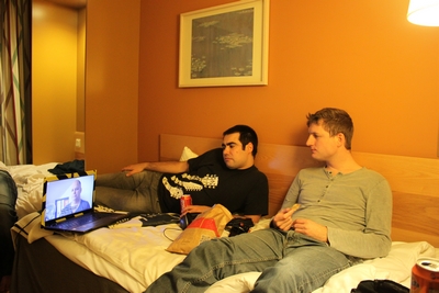 21h33 : Après une petite balade dans Jönköping, on s'est arrêté au traditionnel McDonald d'avant-lan. Et là, déception, aucun McNiP. Dommage mais le principal c'est qu'on ait bien mangé. Programme de ce soir : préparation de questions, début de montage vidéo etc... Demain va être une longue journée avec un réveil prévu à 7h30 et un retour aux alentours de 1h30 du matin. /me croise les doigts que Personne ne ronfle pas !