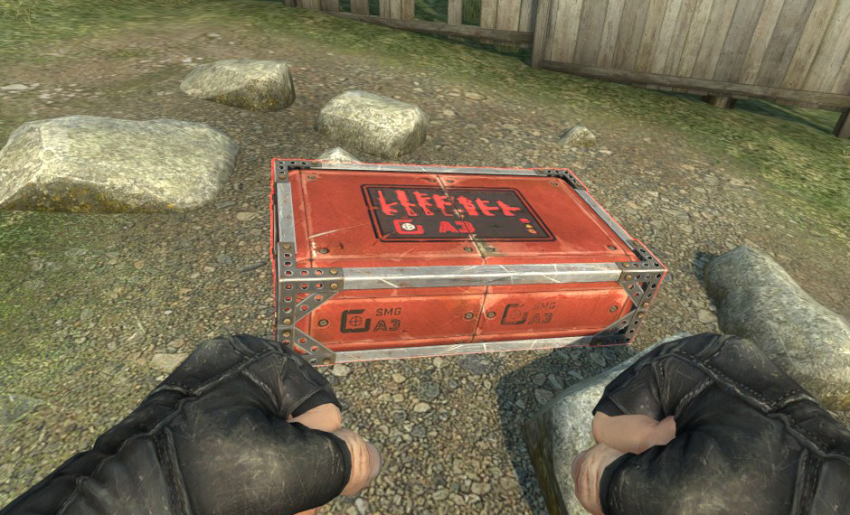 Vous trouverez éparpillé sur la map différentes caisses de loot. Pour ouvrir ces caisses, il faudra les frapper avec vos poings (ou toute autre arme de mêlée), tirer dessus (avec une arme ou un Zeus), ou activer un explosif à côté (C4, grenade explosive, ou même grenade molotov).
