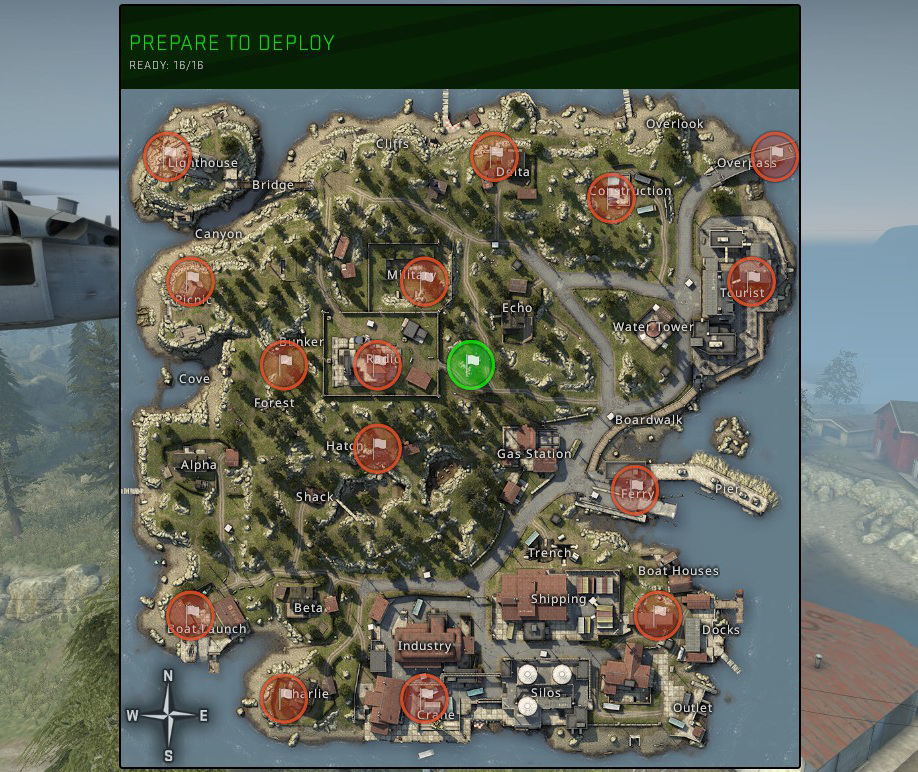 Lorsque vous débutez une partie, à la fin de l’échauffement, vous devez choisir votre point de départ, l'endroit où vous allez être largué sur l'île. Choisissez rapidement et stratégiquement, car vous ne pourrez pas sélectionner le même endroit qu’un adversaire. Si vous jouez en équipe, vous ne pourrez pas non plus choisir le même point que vos coéquipiers : chaque joueur doit choisir le sien, mais vous pouvez vous débrouiller pour être côte-à-côte.