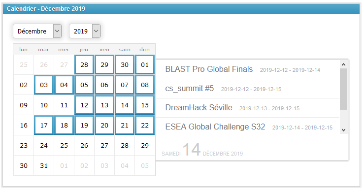 7 Le mois de décembre à venir sera comme le reste de l'année 2019 pour la scène CS:GO : très intense. Plutôt que de ralentir le rythme à l'approche des fêtes et de la petite coupure hivernale, les organisateurs ont au contraire essayé de caser le plus d'événements possibles avant que ne résonne les feux d'artifice du Nouvel an. Ce qui donne un mois surchargé, le paroxysme étant atteint le week-end du 14-15 avec pas moins de cinq lans internationales se déroulant simultanément !
