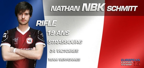 Le premier joueur a avoir été officialisé dans l'équipe de France A n'est autre que le VeryGames, Nathan "NBK" Schmitt évoluant dans la meilleure équipe tricolore depuis début 2010. Une sélection logique étant donné le niveau de ce dernier qui s'est imposé comme l'un des meilleurs joueurs de France voire le meilleur depuis son passage sur CS:GO. Véritable machine à frags dans sa formation, il sera certainement d'une grande aide pour représenter les couleurs hexagonales. D'autant plus qu'il ne serait pas surprenant de le voir rejoint par quelques-uns de ses coéquipiers.