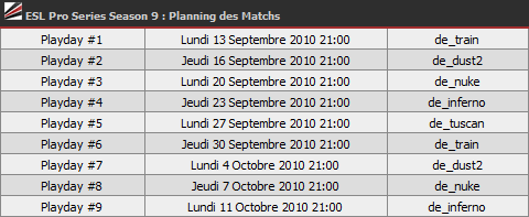 Information supplémentaire, cette saison marquera le retour au poste de Head Admin CSS des EPS de... lapach ! Il a déjà occupé ce poste en collaboration avec d'autres, a une expérience certaine de la gestion de la compétition mais aussi une terrible réputation qui le précède : il incarne la ligne dure des admins ESL. Avec le calendrier très court prévu, sa rigueur permettra peut-être que tous les matchs soient joués avant mi-octobre (date de la fin de la saison régulière), il n'y aura sans doute pas de cadeaux !