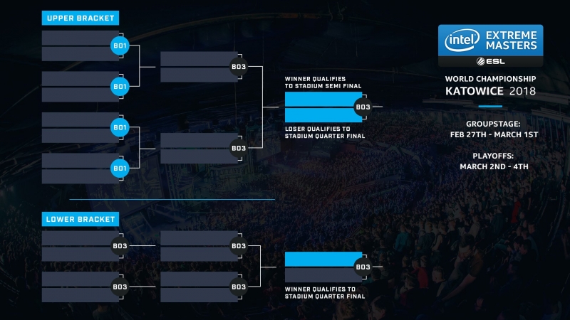 16 Pour la prochaine édition des IEM, qui se déroulera à Katowice, l'ESL a déjà annoncé plusieurs changements comparé aux années précédentes, comme le passage de 12 à 16 équipes ou l'augmentation du cashprize, qui sera désormais de 500 000 $. Et la première modification a une influence sur le format utilisé en phase de poules, puisque ESL a décidé de tester une nouvelle formule.