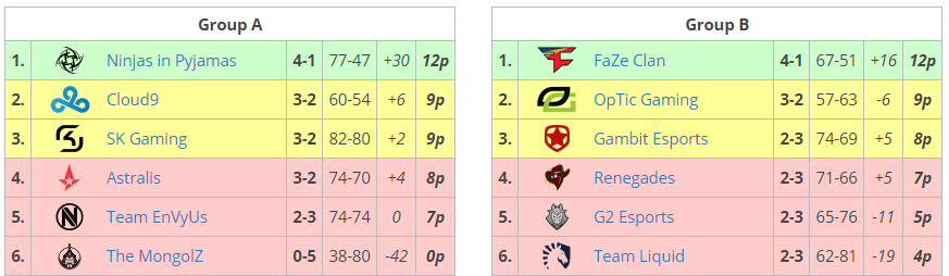Placées dans deux groupes différents, ces équipes se retrouveront encore une fois en round-robin pour déterminer les vainqueurs de chaque poule qui iront directement en demi-finale tandis que les seconds et troisièmes devront passer par un tour supplémentaire. Petite nouveauté en revanche, comme en ESL Pro League, les matchs qui se termineront en overtime donneront deux points aux gagnants tandis que le perdant prendra tout de même un point.