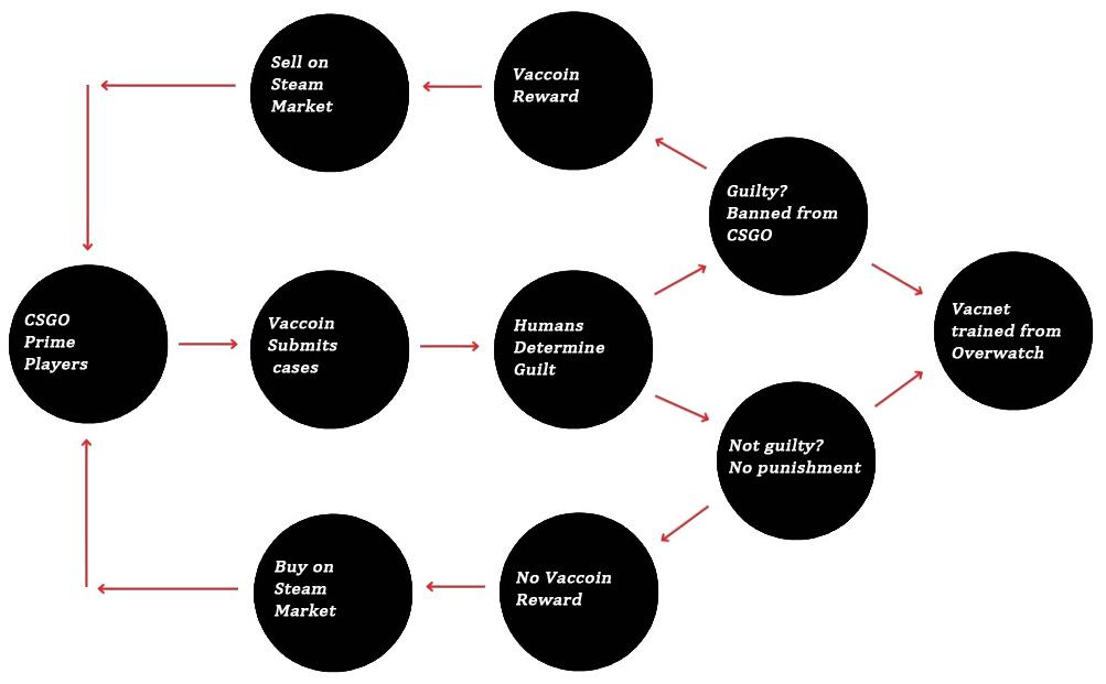 En monétisant le système (possibilité de revendre ses jetons sur le marché Steam), cela pourrait également pousser les joueurs à s'impliquer davantage, en effectuant des reports plus ciblés et en améliorant l'efficacité globale de l'Overwatch. Le VACcoin offre aussi au joueur qui a effectué le report un certain dédommagement, pour compenser le fait qu'il ait dû jouer un match avec un tricheur.