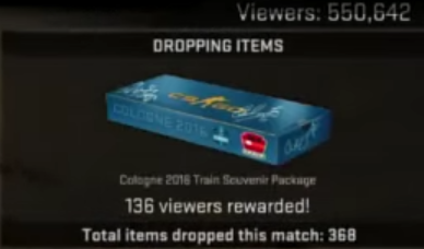 Si vous la voyez, plus aucune doute possible, c'est un Major. En effet, chaque spectateur de Major (sur Twitch ou en jeu) a une chance d'être tiré au sort pour gagner une caisse souvenir, contenant un skin. Le nombre de personnes à regarder le match et à avoir obtenu ce gain est affiché et actualisé au début de chaque round de chaque rencontre, depuis le premier match de poule jusqu'à la grande finale. Seuls les Majors offrent ça. C'est donc un bon moyen de savoir si vous êtes face à un tournoi de ce type ou non. Si vous ne voyez pas cette indication, pas de Major. Si vous la voyez, Major.