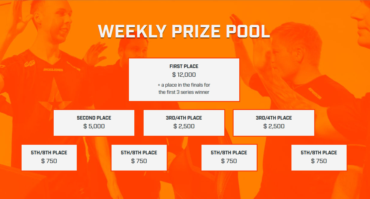 La saison sera divisée en cinq tournois, regroupant à chaque fois huit équipes s'affrontant dans un arbre simple, joué en Bo3 en quatre jours. Ces huit équipes sont celles ayant terminé entre la première et la huitième place de la saison précédente (en Europe, on retrouvera donc Astralis, North, mousesports, NiP, FaZe, Team-LDLC, OpTic et fnatic).