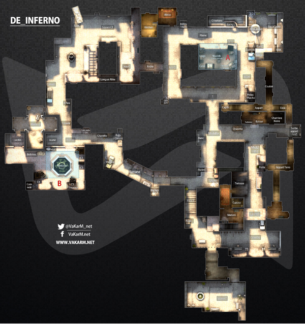 La piscine (Zone rectangulaire faisant face au BP) était appelé comme ceci sur 1.6. Le jaune (Edf/Electrique, enfin tout les noms possible à donner sur un chargeur de batterie en faite) était le faîte d'être DERRIERE cette élément sur Source, qui à disparut à suite de maj, et donc n'existe plus. Source ayant faîte une maj de sa map en prenant la base BP de 1.6 (rappelle toi les bp qui changent et tout les gens qui se sont tromper en communication à cette époque), le jaune n'existais donc plus, et s'appellait donc aussi Piscine à partir de ce moment la. Au début de csgo, inf n'était pas comme ça et se jouait énormément à la 1.6 (du moins avec SeYp on l'a jouait comme avec les travers possible, bpA kill les mecs esca T, bpB kill les mecs banane à travers le mur) etc, et donc logiquement cette zone ce nomme piscine. En revanche je ne comprends pas trop pourquoi sur vakarm, ils ont nommer le point piscine en coin Jaune. (Il n'y a pas de jaune sur CSS & 1.6 à l'heure actuel, et s'appelle Piscine sur les deux opus, et même les trois avec CSGO)