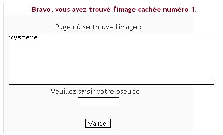 Lorsque aurez trouvé une "pépite" il vous faudra impérativement cliquer dessus. Un formulaire s'offrira alors à vous, il vous faudra le remplir et le soumettre pour chaque image découverte.