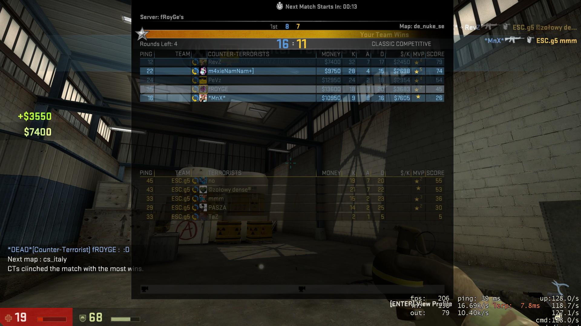 Les deux équipes en question sont ESC Gaming et Fnatic. Elles communiquent via les réseaux sociaux et laissent quelques indices permettant de prendre la température des joueurs vis-à-vis de CS:GO. Pour la première, elle est déjà apparue en Go4CSGO sous le tag AGAiN où elle n'a clairement pas brillé comme ses rivaux suédois puisque les coéquipiers de Filip "Neo" Kubski ont été éliminés dès le troisième tour par Mistral.Tt. Nous savons également que les Polonais vainqueurs des derniers IEM World sur 1.6 s'entrainent souvent sur le nouvel opus affrontant un bon nombre d'équipes françaises comme les Evokate! comme en témoigne cette capture d'écran :