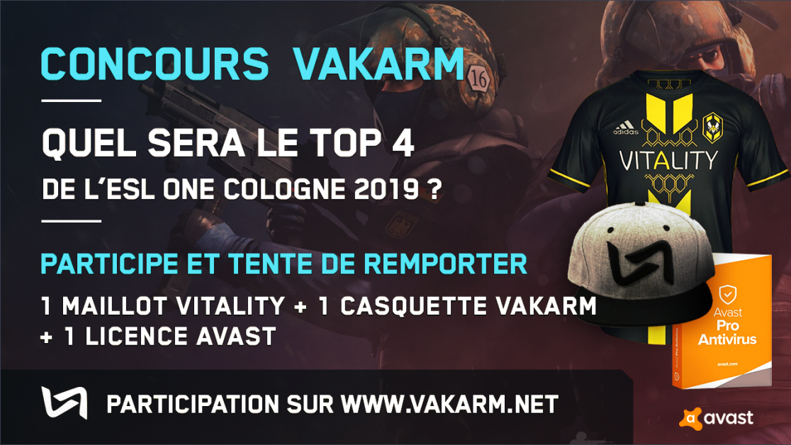 L'été c'est super parce que ça permet de trouver facilement des noms pour les concours. Du coup, bim, concours de l'été à l'occasion de l'ESL One Cologne – qui s'annonce incroyable en termes de niveau de jeu tant toutes les meilleures équipes du monde sont présentes (à une ou deux près) –, deux maillots Vitality à gagner !