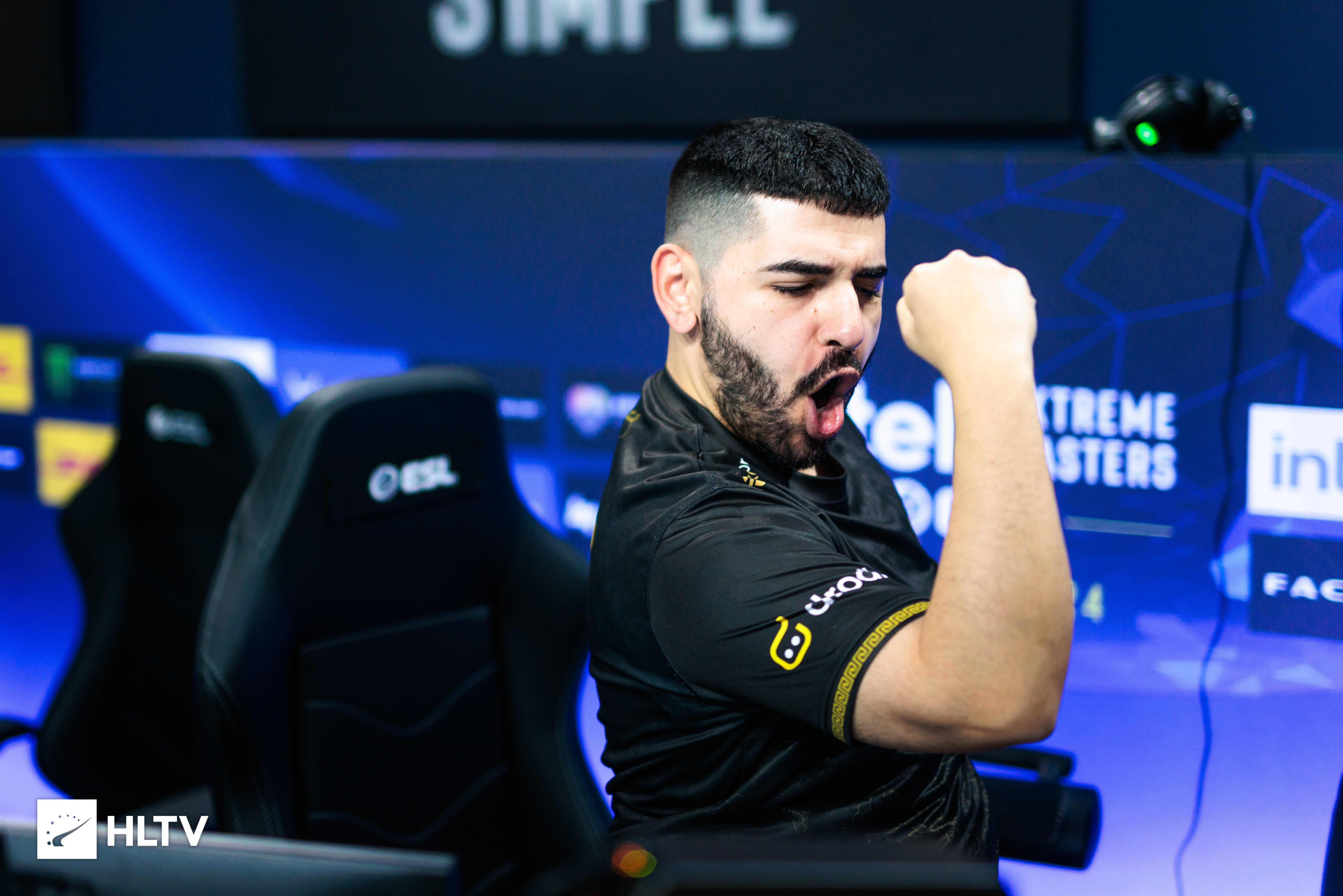 MAJ3R exultant après la victoire d'Eternal Fire contre Falcons - Crédit : HLTV ; theMAKKU