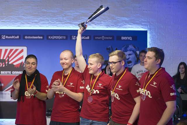 Mouz qui soulève un trophée, une image de plus en plus rare (ici déjà avec Gob b, ChrisJ & LEGIJA)