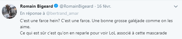 Premier couac justement, Romain Bigeard, personnalité bien connue de la scène LoL et désormais salarié chez Riot Games, affirme que l'éditeur du célèbre MOBA n'a jamais accordé d'autorisation à l'organisation et n'envisage visiblement pas de le faire :