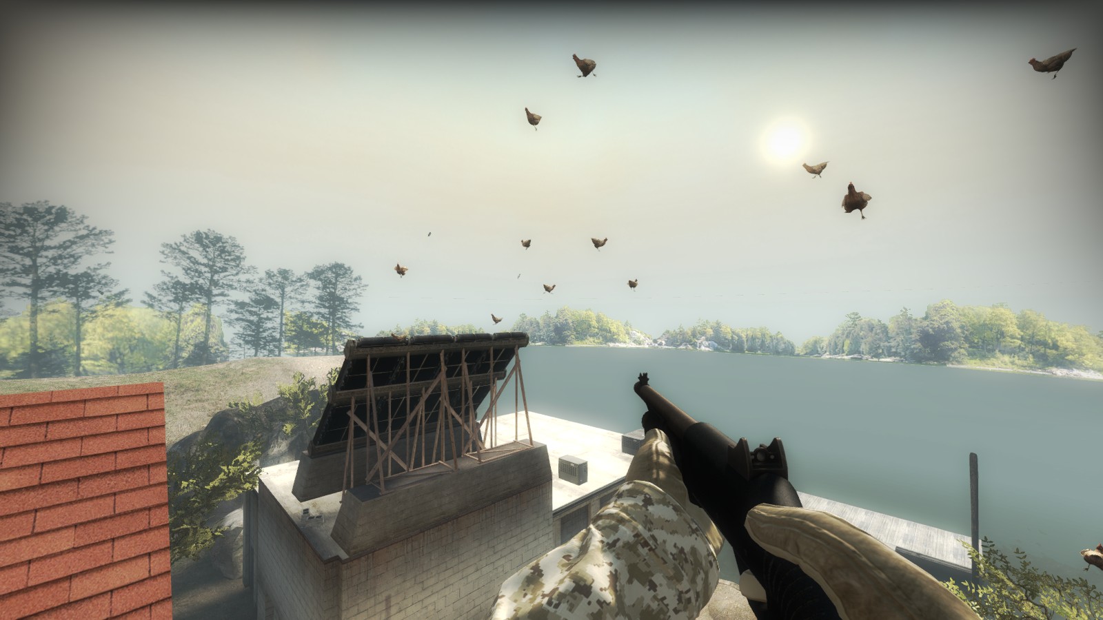 Oui vous avez bien lu, un mode entièrement consacré à nos amis les volatiles avec une map spécialement conçue pour celui-ci. Après avoir fouillé dans un des fichiers .vpk, il semblerait que le but de la carte soit de développer les réflexes du joueurs en tirant froidement sur des poules lancées à grande vitesse.