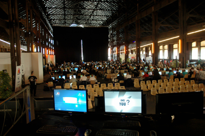 Une fois à l'intérieur, la salle est grande et ressemble à un grand hangar. Le staff PxL est présent en nombre et semble s'être renforcé pour un rendez-vous plus important. La partie centrale de la salle est réservée aux cseurs, tandis que la partie gauche rassemble les joueurs de TF2 et Starcraft II.