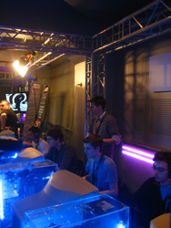 Ainsi ces différentes salles, superposées sur plusieurs étages, proposaient un format assez restreint, ce qui était à la fois une bonne et une mauvaise chose. Bonne car cela facilitait l'organisation du show entourant l'événement ainsi que l'accès aux informations et aux personnes. Mauvaise car finalement la salle principale, un peu victime de son succès, se retrouvait parfois à devoir entasser deux à trois cent personnes dans un espace plutôt réduit. On apprécie cette proximité lorsqu'on va en boite, on en profite déjà moins dès qu'il s'agit de regarder un match de Counter-Strike. Un bémol pour l'événement donc, qui n'en est pas complètement un non plus puisque c'était aussi l'originalité du lieu qui a fait de ces finales EPS un événement si particulier, si unique, ajouté à d'autres éléments auxquels je reviendrais plus tard.