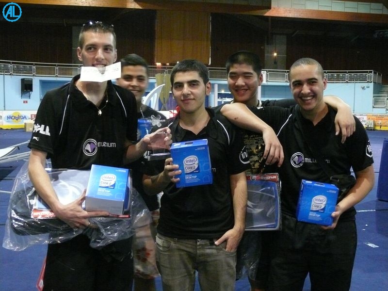 SIXER, MAJ3R, mahE, Geno, Ozstrik3r et le coach Willy, champions de France 2009