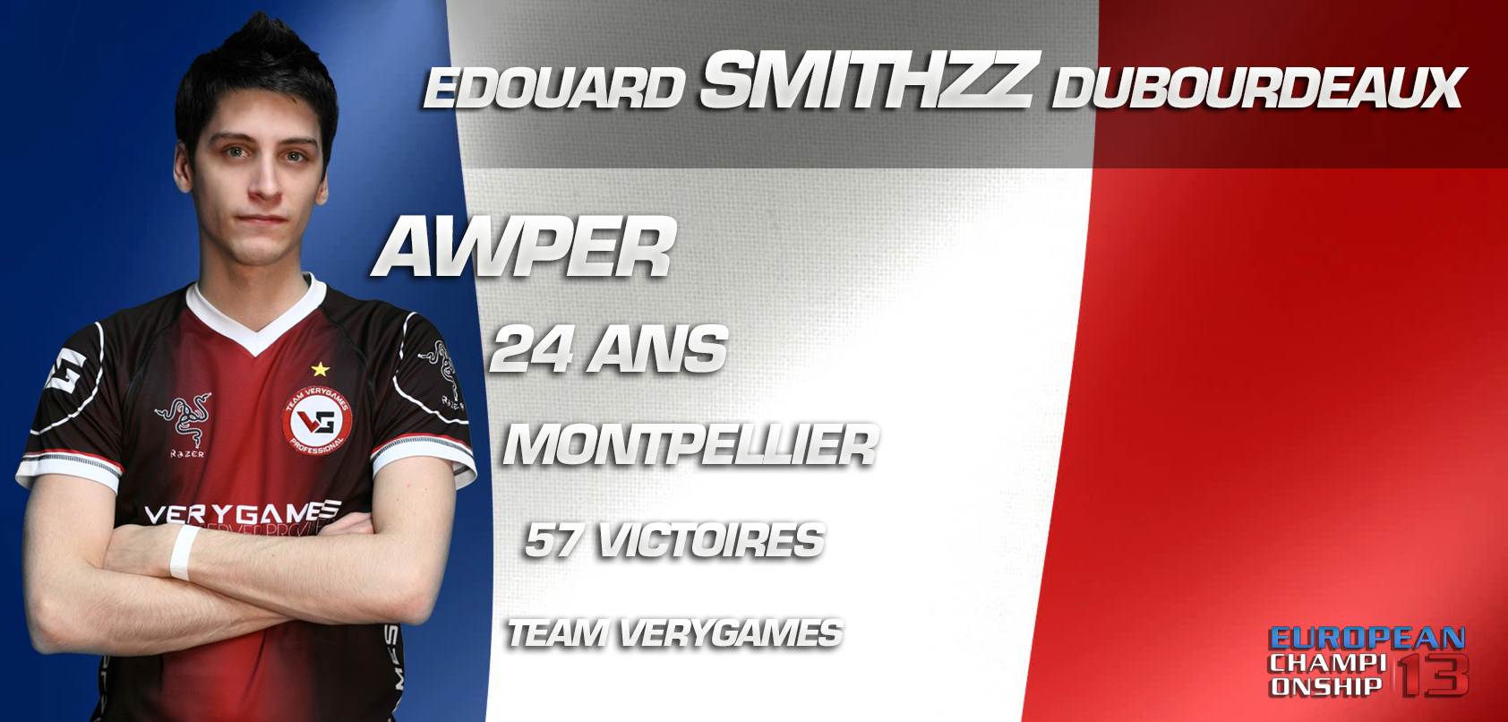121 Aujourd'hui dimanche le dernier joueur de l'équipe de France A a été officialisé. Certains l'avaient prédit, il s'agit d'Edouard "SmithZz" Dubourdeaux, dit Eddy, qui rejoint là des joueurs qu'il connaît bien, puisqu'il a déjà joué avec 3 de ses coéquipiers et qu'il développe un complicité toute particulière avec Richard "shox" Papillon. Etant le joueur CS:S/CS:GO avec le plus gros palmarès, c'est un joueur d'expérience qui rejoint l'effectif.