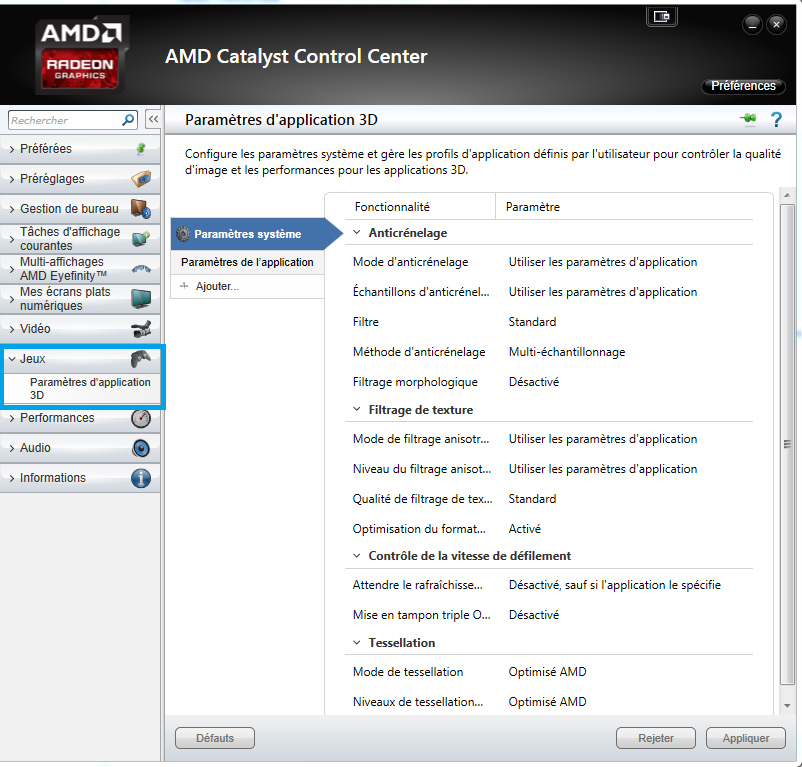 Synchronisation verticale : Le "Triple tampon" est recommandé pour une meilleure expérience. Désactiver ce paramètre peut provoquer des coupures d'affichage.