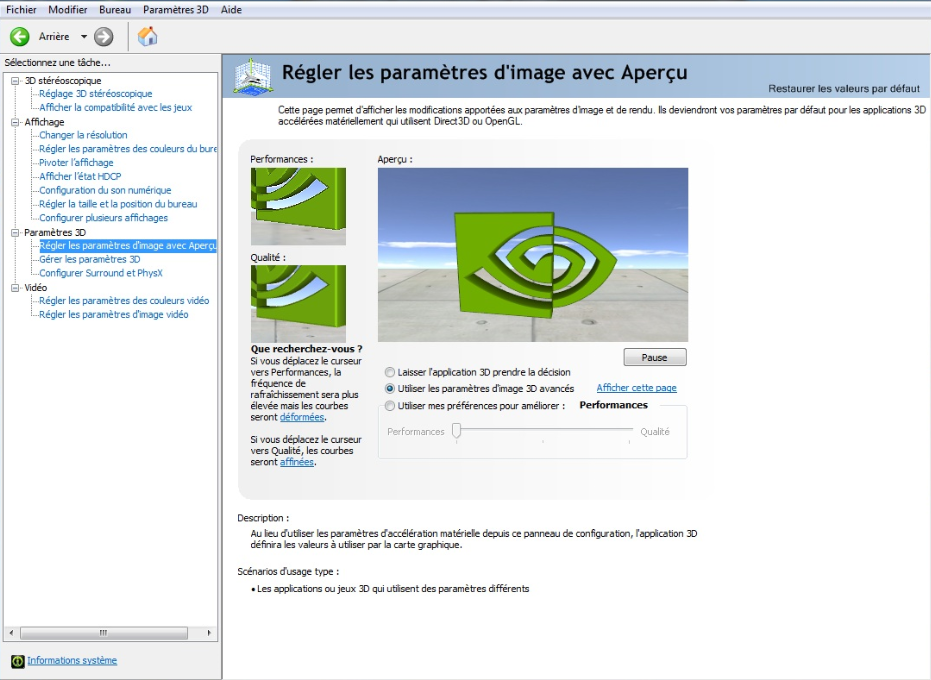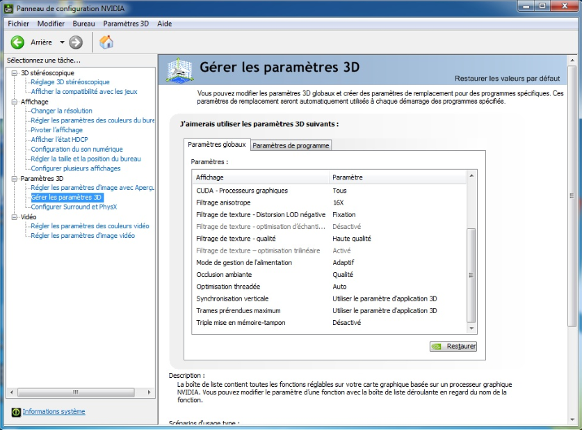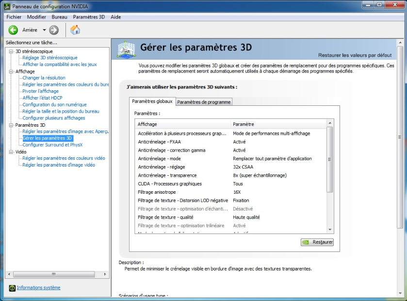 Ces captures d'écrans présentent la partie importante de votre carte graphique qui joue directement sur les graphisme en jeu et donc votre rendu final.