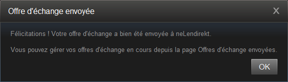 Si vous décidez de répondre à l'offre, vous arriverez sur une nouvelle page où vous pourrez directement accepter l’offre ("Confirmer l’échange" puis "Accepter l’échange") ou modifier l’offre. Vous pouvez négocier et à son tour, l’autre joueur devra donc accepter votre contre-offre.