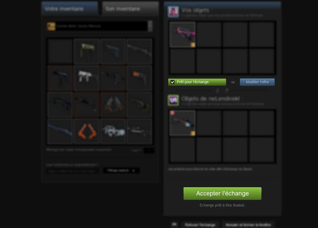 heu derniere question, je fais ad a bot, la fenetre d'echange s'ouvre, je glisse mon arme que je parie, et la je dois accepter ? car le bot lui ne glisse pas d'armes, comprends pas tout :/