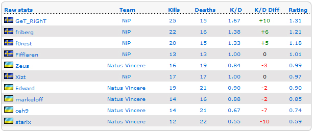 Du côté des Ninjas in Pyjamas, nous avons eu le droit à une confrontation entre légendes contre les Ukrainiens de Natus Vincere qui ont encore tout à prouver sur Global Offensive. Largement favoris, les coéquipiers de Richard "Xizt" Landström se sont montrés quelque peu fébriles sur de_train. Laissant passés cinq rounds alors qu'ils étaient en défense, les NiP ont dévoilé quelques failles contre des Na`Vi au niveau encourageant. Ces derniers n'ont néanmoins pas réussi à contrôler la déferlante jaune et bleue et se sont finalement inclinés sur un score loin d'être ridicule, 16-09.