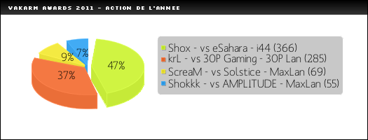 Le choix était plus limité cette année, nous lancerons très certainement un sondage de pré-nomination l'année prochaine. Malgré cela, c'est l'action de shox qui l'emporte. Assez surprenant puisque celle de krL avait visiblement beaucoup marqué les esprits.