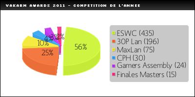 C'était l'événement le plus attendu de 2011, une grande première sur Source, et c'est donc en toute logique que l'ESWC remporte l'award de la compétition de l'année. Des matchs de haut niveau, des joies, des déceptions, une organisation au poil, bref un événement comme on aimerait en voir plus souvent.
