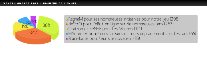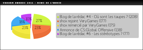 Merci à tous pour votre participation et à deStrO pour la génération des graphiques de cette news. Félicitations aux vainqueurs. Quelque chose me dit qu'une petite surprise est prévue en rapport avec ces Awards lors de la Spirit ce week-end, alors soyez attentifs durant notre coverage.