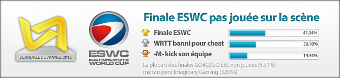 Scandale de l'année : la finale de l'ESWC 2012 ... On aurait inversé l'ordre des awards la DH Winter aurait gagné en compétition de l'année (et à mon avis ça aurait été mérité)
